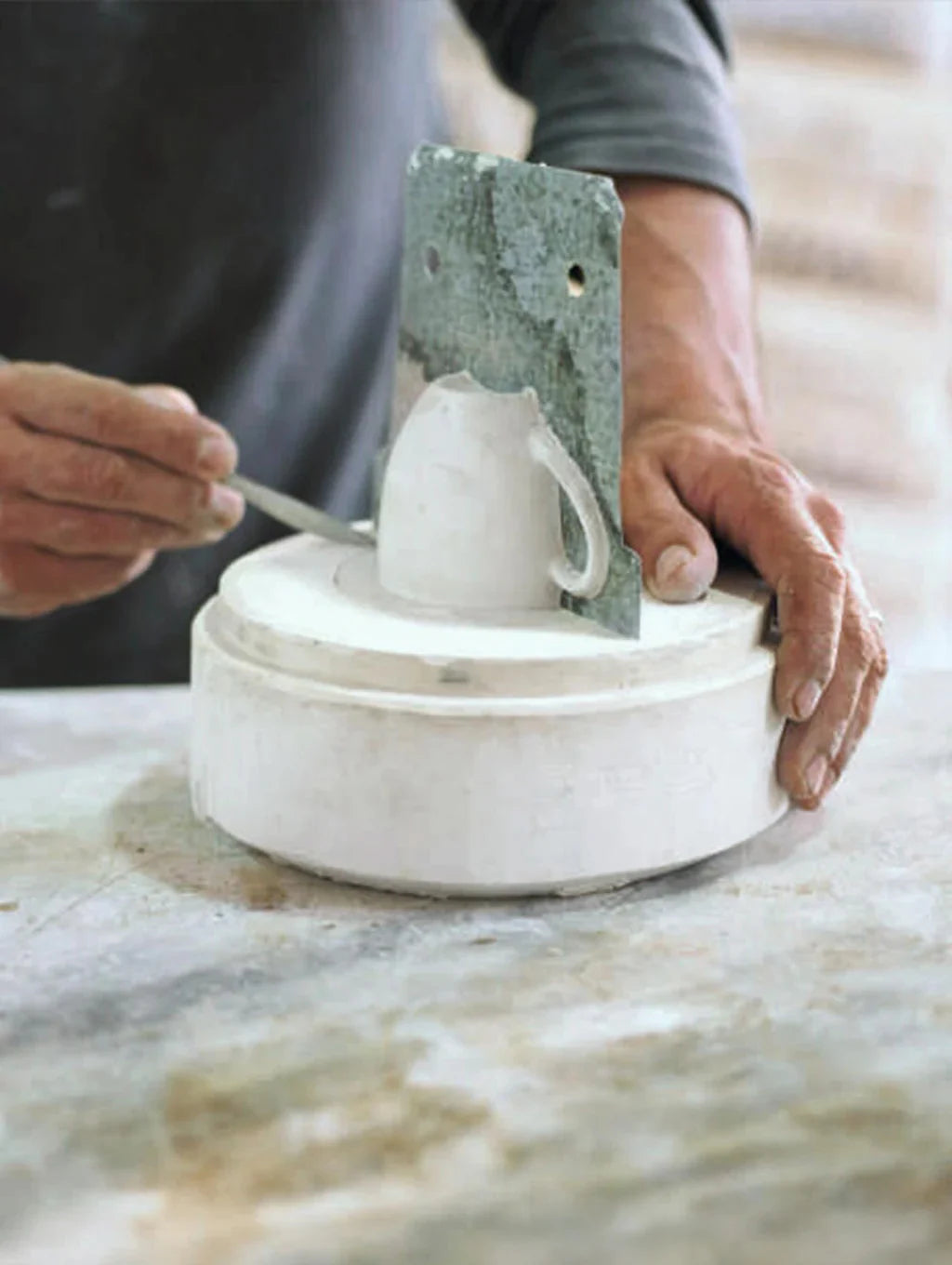 Irregular, organic shape with a hand-friendly matte eggshell glaze. Handcrafted in Portugal; reactive glaze makes every piece one of a kind.