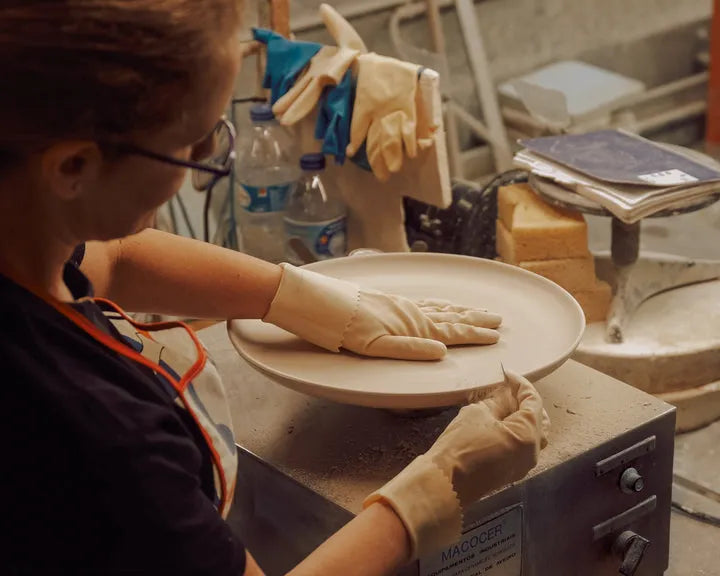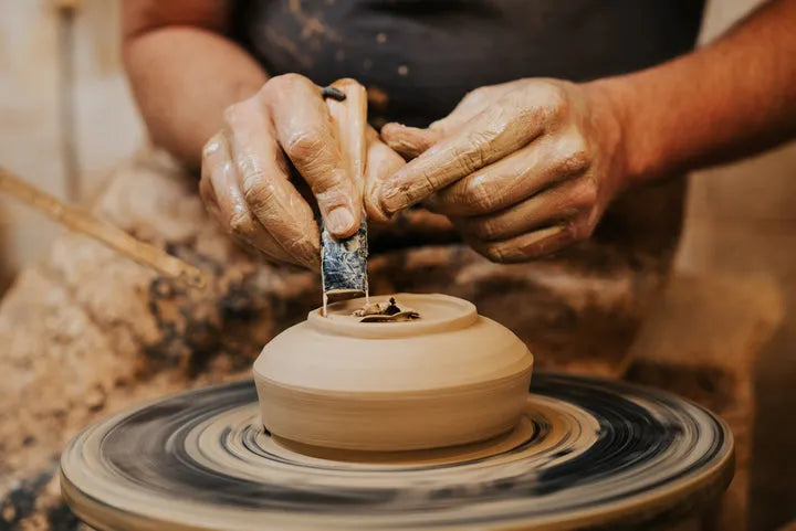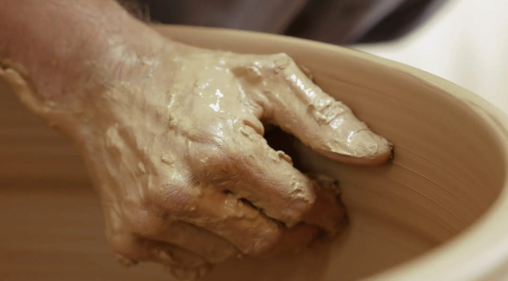 It is carefully poured into hand-modeled molds, pressed, or thrown and modeled on the potter's wheel. Using a sponge and a skilled hand, casting seams are then removed, rough spots smoothed, and each surface refined to a level that is both visually pleasing and tactile.
